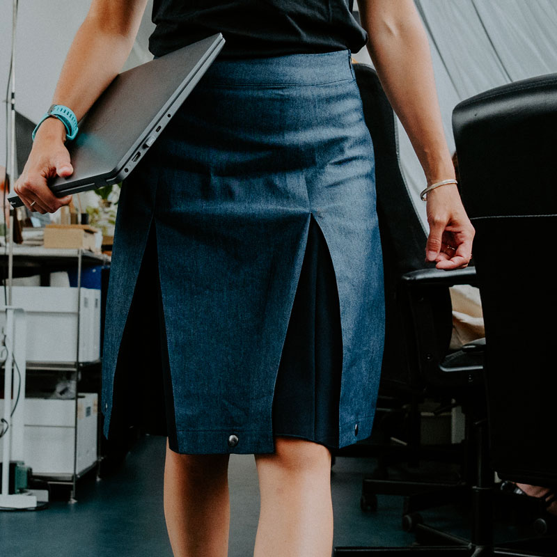 Nos jupes sont conçues à partir de rouleaux de tissus non utilisés, certifiés OEKO TEXT 100 STANDARDS, par de grandes maisons de mode. Plutôt que de finir oubliées dans un stock, ces matières de qualité retrouvent une nouvelle vie grâce à l’upcycling.